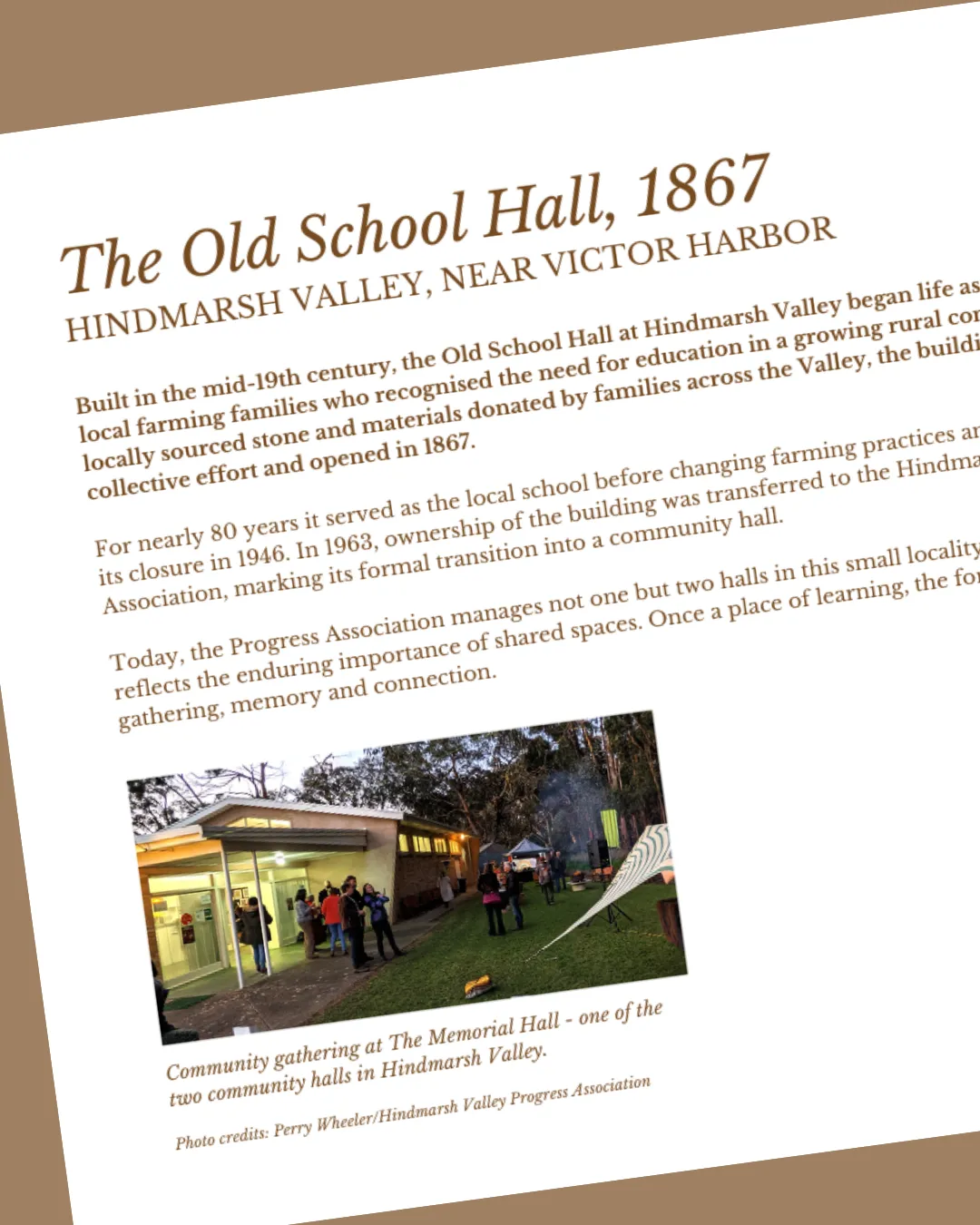 For the Love of Community Halls was recently featured on the regional storytelling platform Greater SA, where journalist Melissa Smith shares the inspiration behind the project and why documenting South Australia’s settler-era community halls matters.